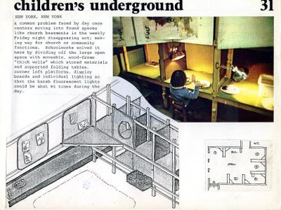 This day care environment was built by the teachers over 30 years ago and cost less than $300 in materials. It still exists today under about 20 coats of paint, an Upper West Side tradition.