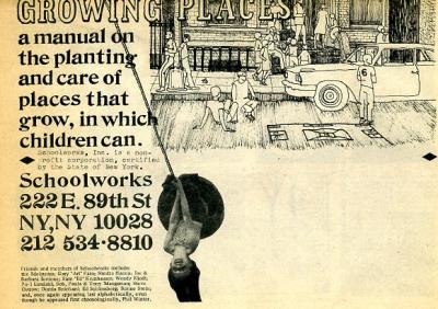 "Growing Places" was the name of a tabloid-style publication we put out four years after we started doing this work as a substitute for a conventional portfolio or resume. We called it a "used newspaper"; that is, it contained news that was not so new. It was neither a catalogue for buying things nor, primarily, a set of instructions for building them, although these were included at times. It contained stories of projects and experiences we'd had with kids, ideas we wanted to share, our history and hopefully, useful information about the "planting and care of places that grow, in which children can", all in a very personal style. In other words, we had invented a web site 15 years before its time. All we needed was a digital revolution to catch up with us. So I felt it would be appropriate to transfer some of this stuff to the real web site, either verbatim or in a condensed version, plus one or two thoughts we've had since 1975. This will be the most dynamic part of the site and will change and grow periodically as an incentive for readers to come back for more "old news".