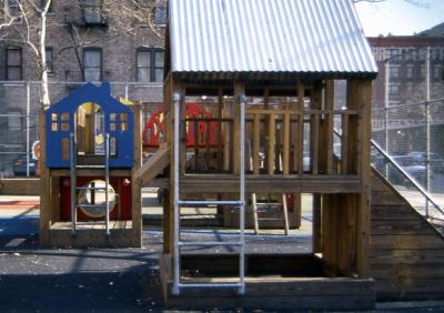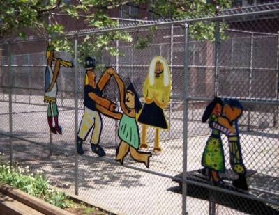 Teenagers hired by the Rheedlen Foundation (now the Harlem Children's Zone), which ran P.S. 194's after-school program, learned carpentry skills and provided the labor for this project.