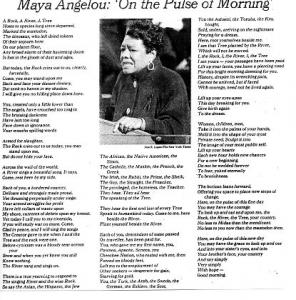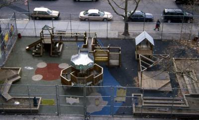 So begins a poem recited by Maya Angelou at the inauguration of Bill Clinton which is the subject of the playground at P.S. 194. The poem goes on to spin a metaphor for the history of life on Earth, the rise of different cultures whose descendants migrated to a new land - in chains, fleeing injustice, or seeking a new future - culminating in the establishment of America - "the Rock, the River, the Tree, your country".